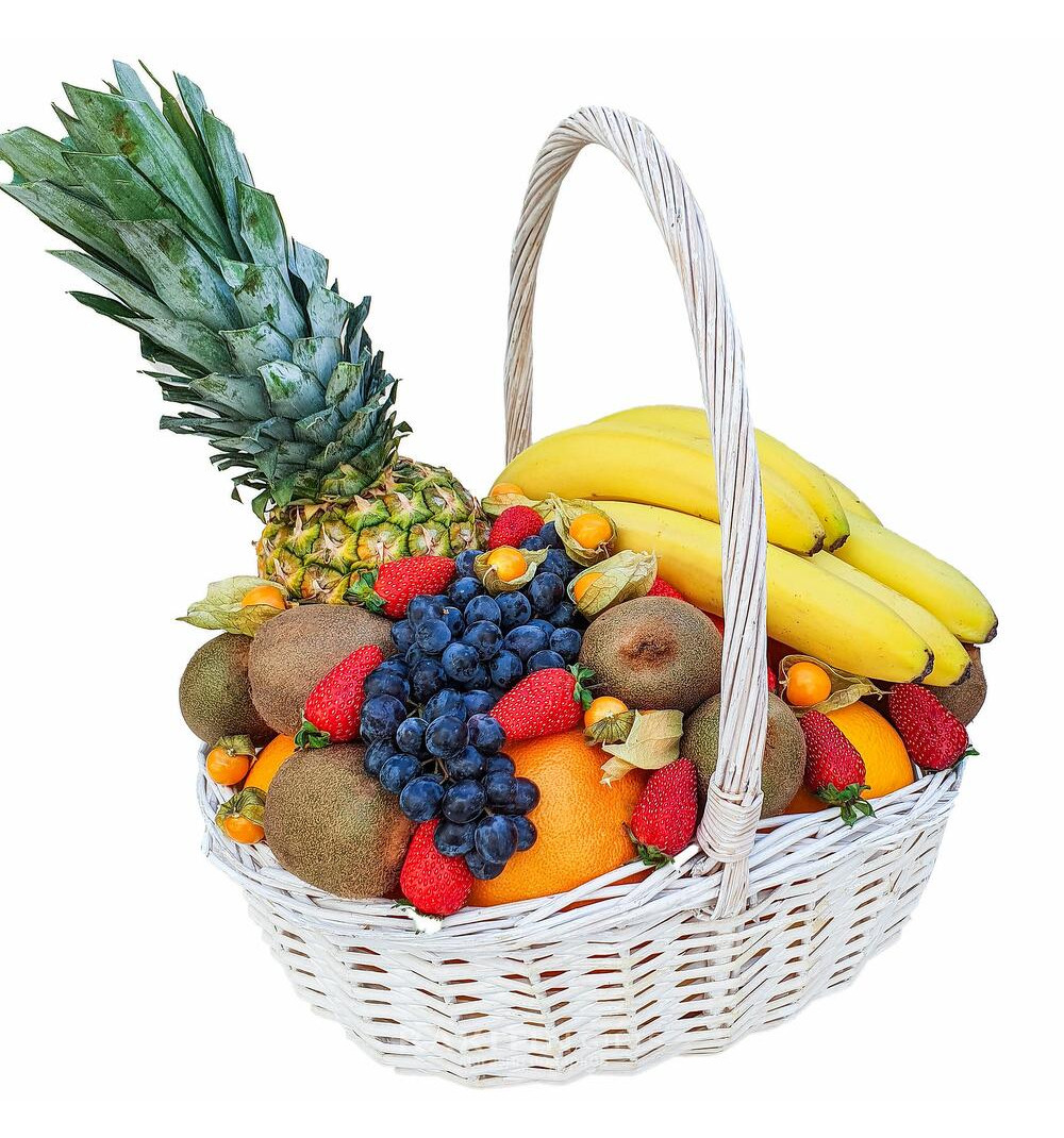 Фруктовая корзина "Вкусный край" - это настоящий рай для любителей свежих фруктов. В этой великолепной композиции вы найдете сочный и сладкий ананас, нежные и ароматные бананы, освежающее и витаминное киви, а также ароматный и сочный виноград. А чтобы придать букету неповторимый вкус и яркие краски, в корзине также представлены аппетитные ягоды клубники и освежающие цитрусовые. Эта фруктовая корзина станет отличным подарком для близких и дорогих людей, а также украсит любой праздник и событие своей яркой и сочной атмосферой.